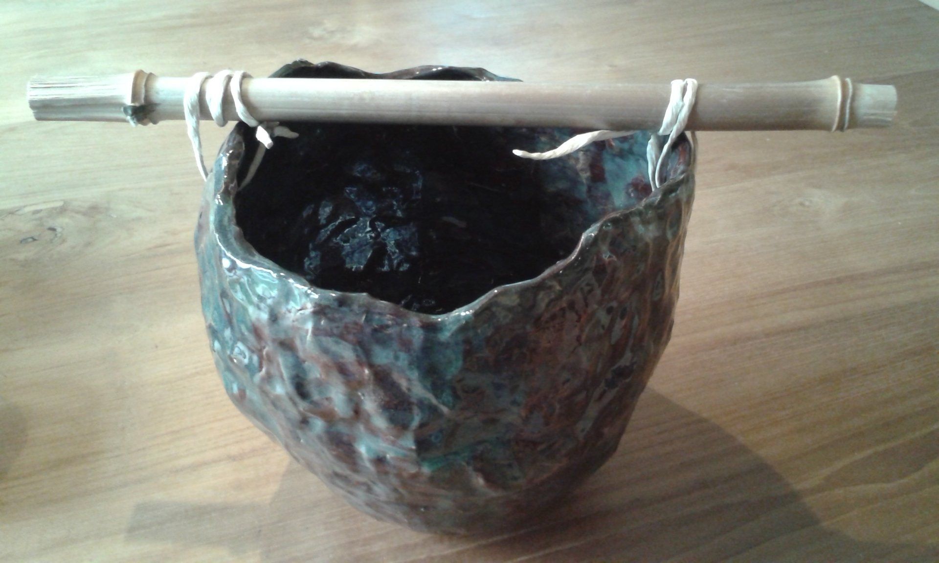 Speciaal is het werk met de Japanse techniek Raku-stoken, die een bijzonder craquelé-effect geeft.